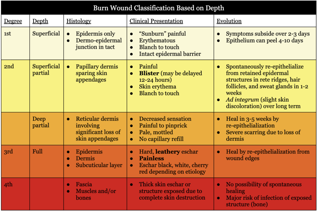 • Initial clinical evaluation is only 64-76% accurate – depth evolves first 24-48 hours