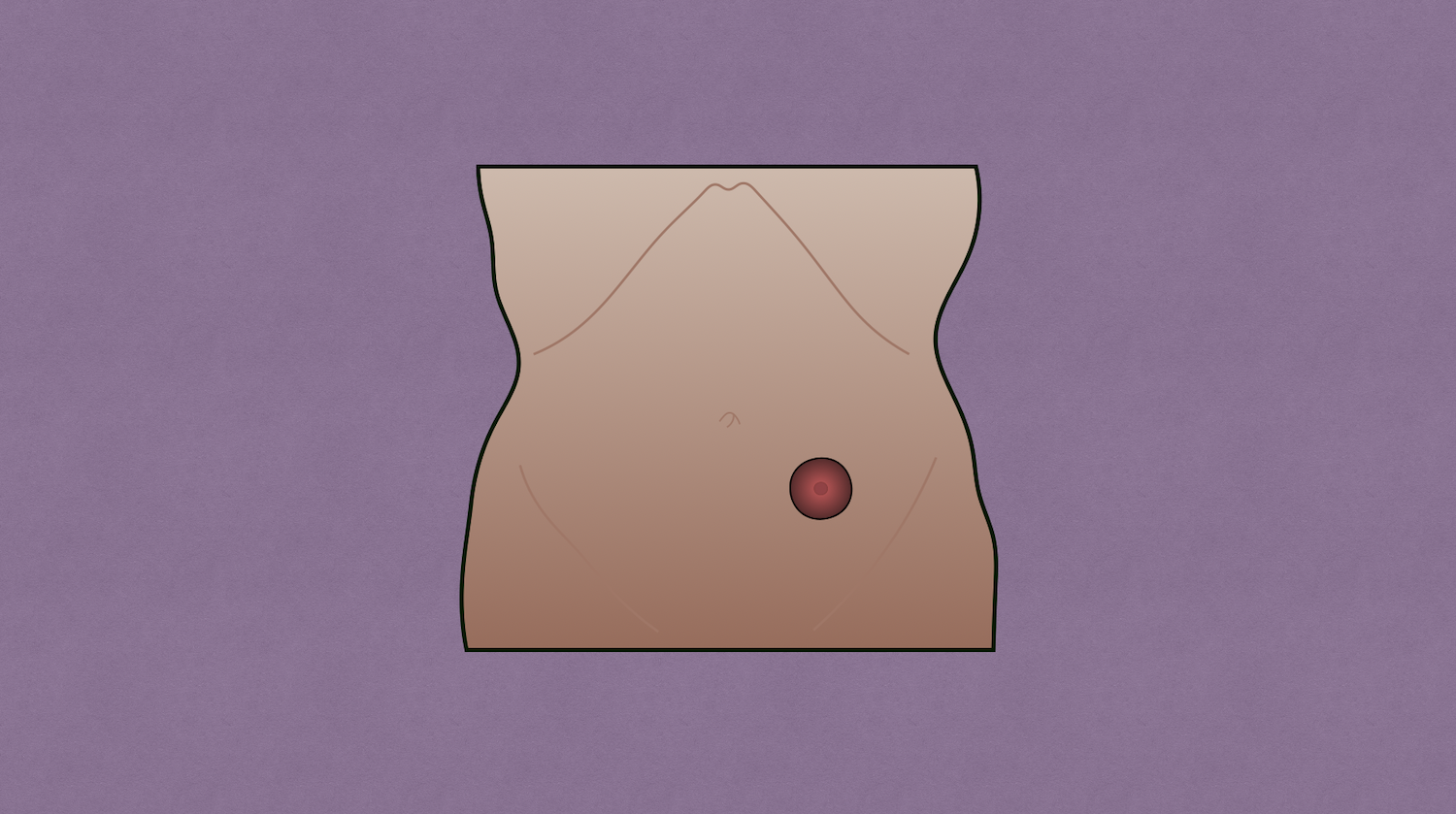 - Skin around the bowel sinks in relative to the regular contour of the abdomen causing the stoma to sit in a crease