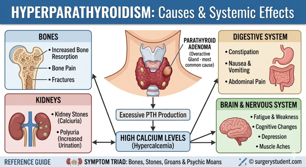- Occurs when ≥1 parathyroid glands secretes excess PTH, if >1 gland is involved it is referred to as multigland disease